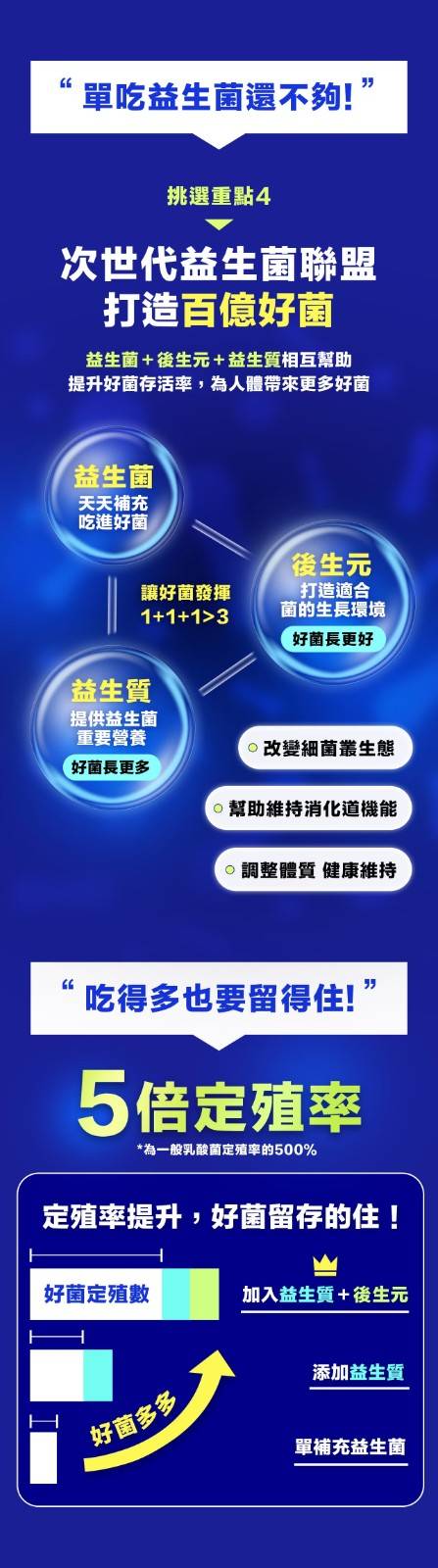 含獨家多國專利益生菌 TW17S 及 RMA113,代謝有感達 170%、保護力達195%,能幫助消化丶排便順暢丶維持消化道機能